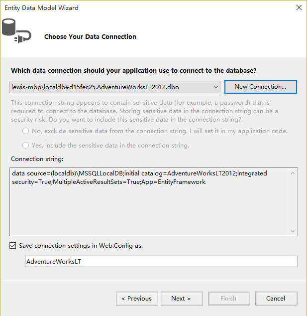 11.After returning to the Entity Data Model Wizard window, click the Next button.
