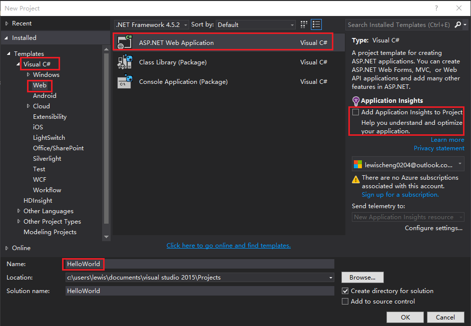 3.In the New Project dialog box, click C# > Web > ASP.NET Web Application.