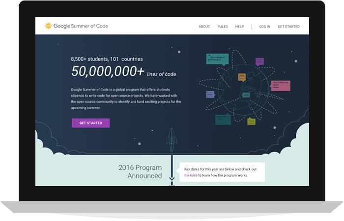 Spend your summer break writing code and learning about open source development while earning money! Accepted students work with a mentor and become a part of the open source community. Many become lifetime open source developers! The 2016 student application window was March 14th to 25th.