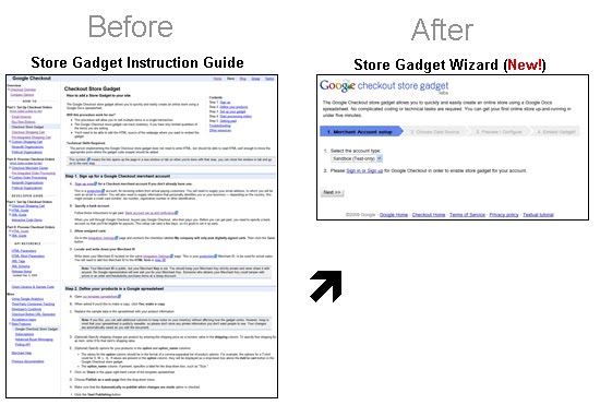 As you may recall, the Google Checkout store gadget, available in Google Labs, allows you to create an online store with inventory managed from a Google spreadsheet and payments accepted through Google Checkout. Today, using Google Docs and Checkout to sell online became easier with the introduction of a new store gadget wizard.