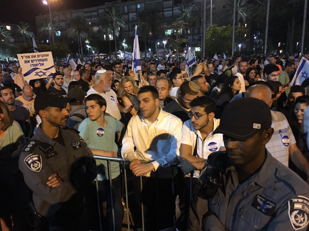 העצרת היתה אמורה להתחיל ב19:35. עברו 45 דקות ואפילו לא קרובים להתחיל, כי הקהל נהנה יותר לשיר סביב עמדת התקשורתpic.twitter.com/jqnXYir8cZ