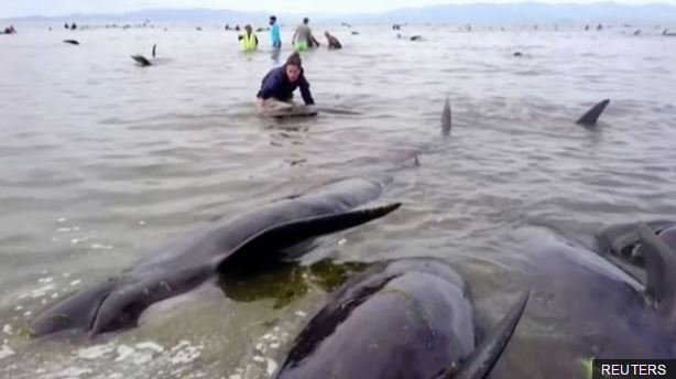 У Новій Зеландії викинулися на берег понад 400 китів. Коли волонтери приїхали туди, 70% ссавців уже загинули. http://bbc.in/2kbDemL pic.twitter.com/BYPpIYmUl7
