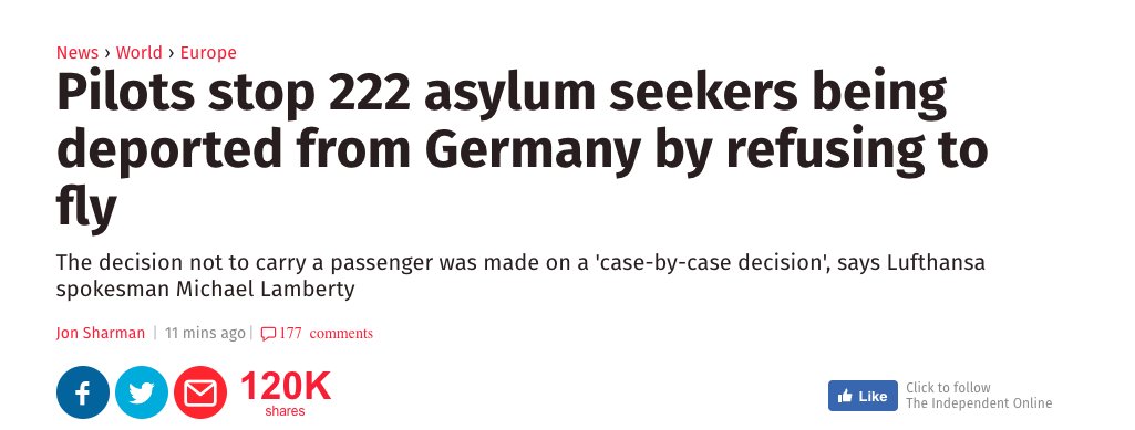 The story has *120,000 shares* until it was updated with the correct figure: Not 222 flights…. 222 people.https://twitter.com/stuartmillar159/status/938434619048976385 …
