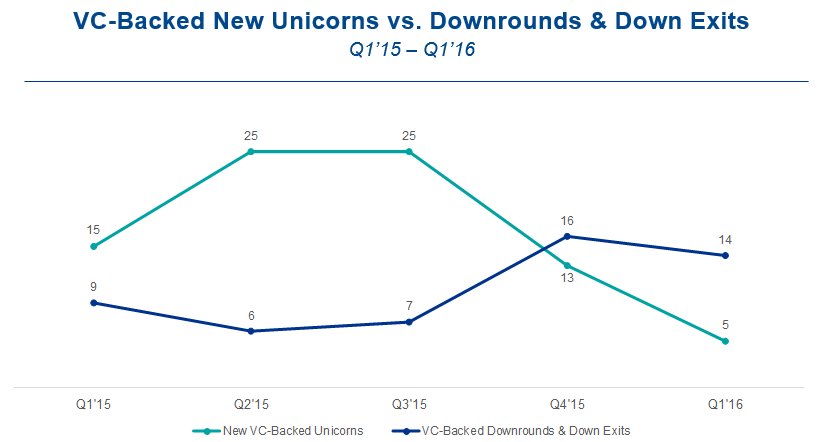 Downround activity shot up recently, eclipsing the new unicorn count in the last 2 quarters http://cbi.vc/1VyjjiD pic.twitter.com/ZlDjWwxJB0