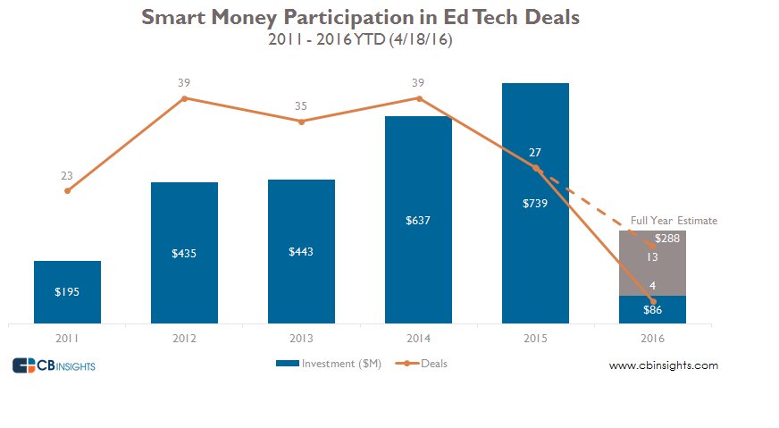 Smart money VCs decreased deals to ed tech startups in 2015 http://cbi.vc/1NurWYO pic.twitter.com/hGhtajhfb3