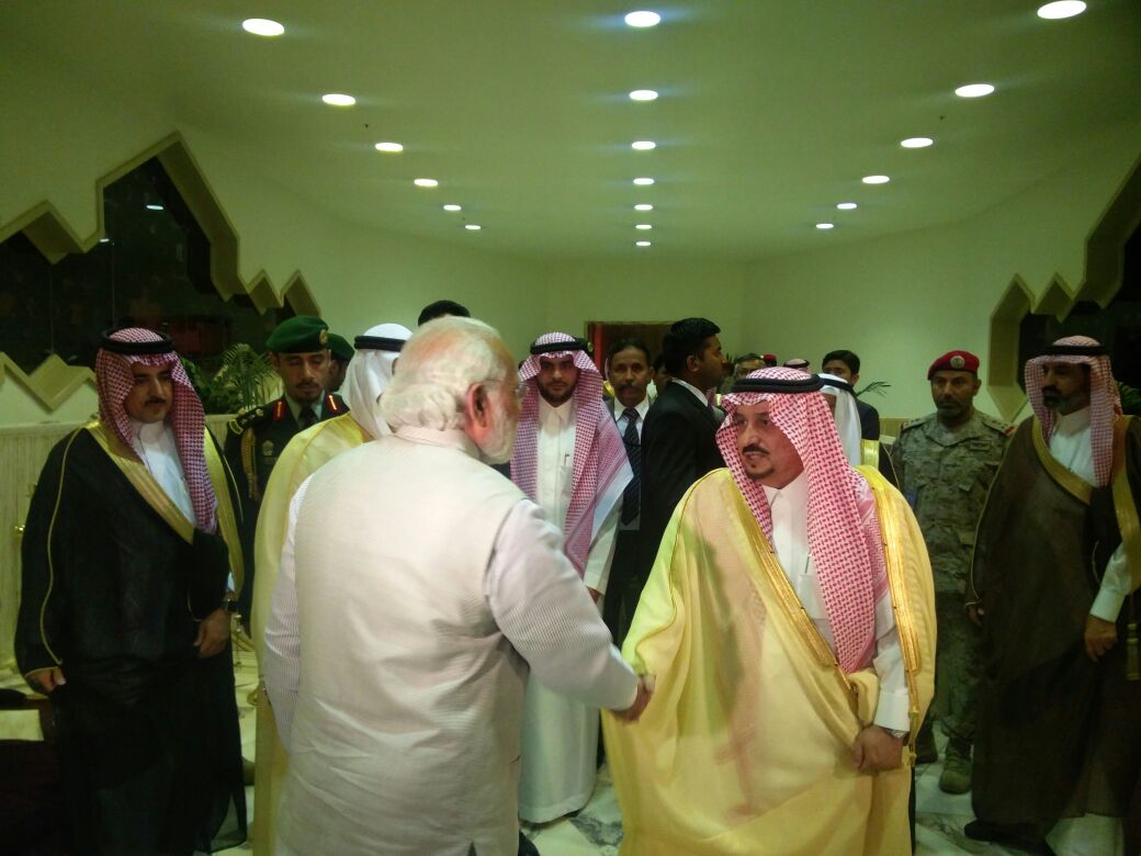 @narendramodi bidding adieu to Crown Prince and the Minister of Interior of Saudi Arabia Mohammed bin Naif pic.twitter.com/ibAjxVJgYa