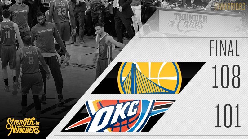 #Warriors beat Thunder 108-101. Story to follow.#WARRIORSvTHUNDERpic.twitter.com/yuRQvUS89m