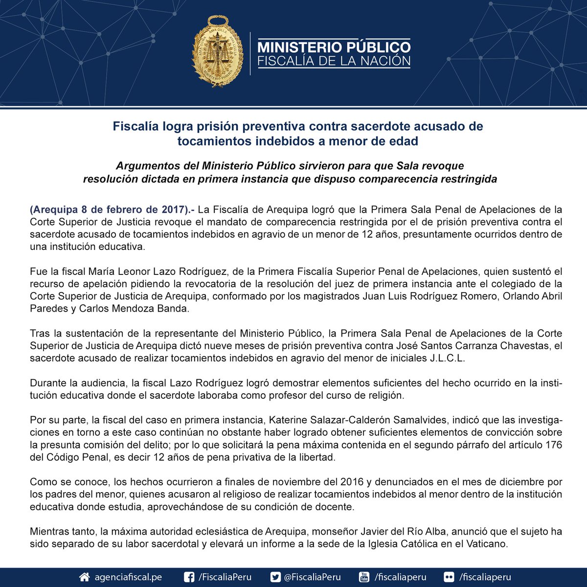 #Arequipa: Fiscalía logra#PrisiónPreventiva contra sacerdote acusado de tocamientos indebidos a menor de edad http://bit.ly/2kwtaIH pic.twitter.com/OEcYD8C7Vx