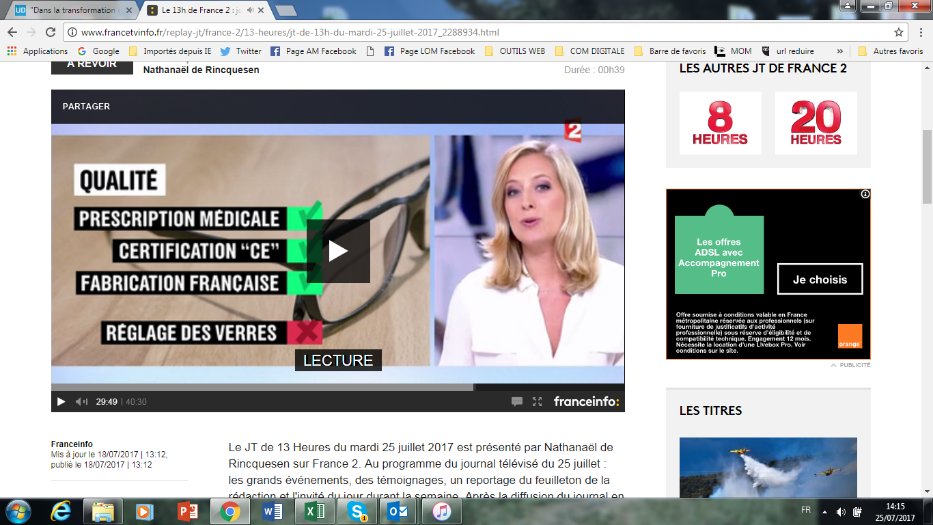 Regarder ce reportage à 29'53". Les opticiens mutualistes à l'honneur et C'est mérité.