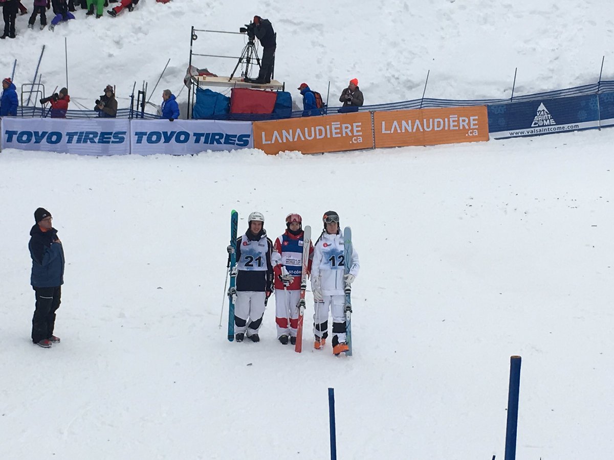 Podium féminin de la Coupe Canada de slopestyle 15 janvier : 1) Marylou Bouthiette 2) Megan Cressey 3) Dillan Glennie