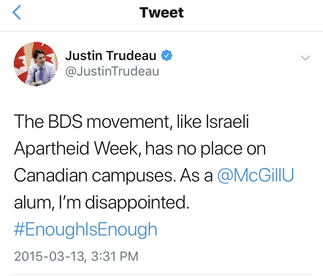 #BDS movement by the Canadian Federation of Students, I want to reaffirm the Prime Minister’s strong rejection of BDS: The BDS movement has no place on Canadian campuses.pic.twitter.com/phiwGcsKO0