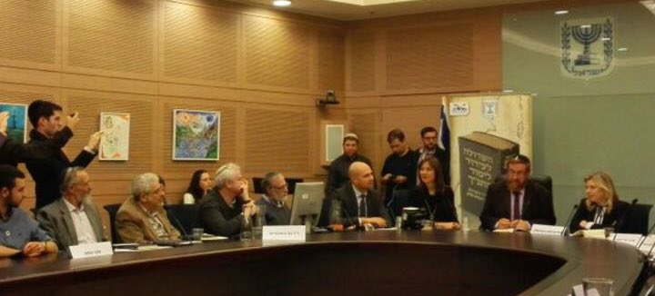 בו' החינוך מתקיים דיון השדולה למען התנ״ך בהשתתפות הגב׳ שרה נתניהו. ברקע ציוריו של הדר גולדין. מחר תפתח שם התערוכה
