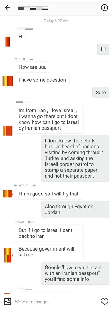 3. Here's a discussion I just finished on Instagram with an Iranian lover of Israel. Name blurred for his protection.