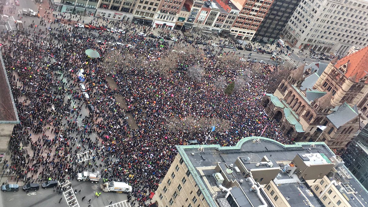 Crowd continues to grow in Boston's Copley Square -- Mayor Walsh and Senator Warren just spoke in opposition to Pres Trump's exec orderspic.twitter.com/bbtCFl9Wmo