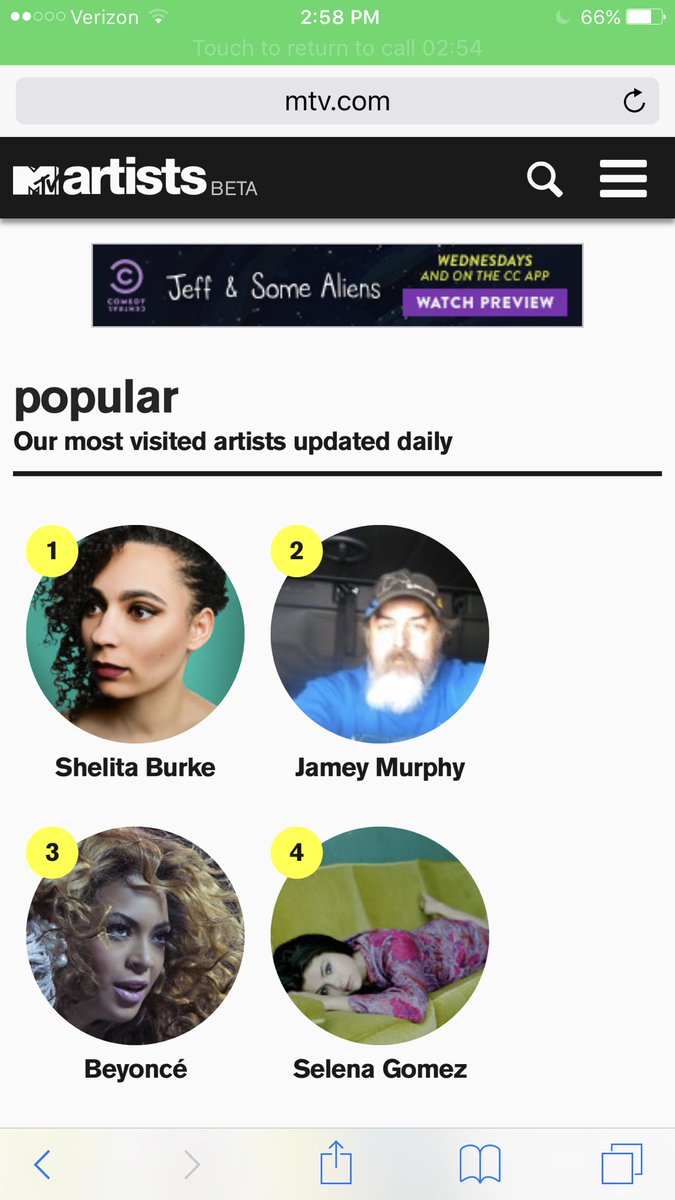 #1 MTV most visited artist, Great Job looks like the new tune is getting traction. Congrats my friend! Making us proud.