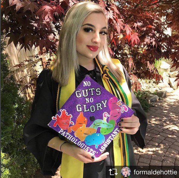 These two years have been a complete whirlwind. I’ve gone from a lost, weird mortuary girl to a confident, ambitious woman in science (but still kinda weird)." She used our gut stickers on her grad cap, so cute!pic.twitter.com/bBPJtt89on