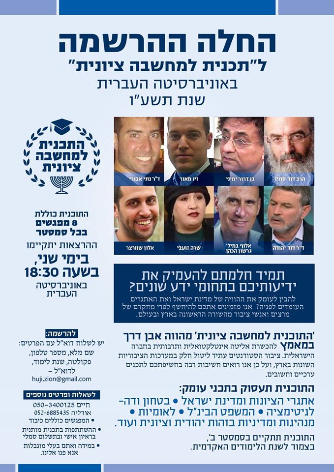 שמחים להציג את התוכנית למחשבה ציונית ב