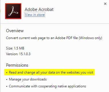 With latest Reader update, Adobe is automatically prompting users to install a Chrome extension which includes telemetry. Says no URLs.pic.twitter.com/PnDV4Zy0fv