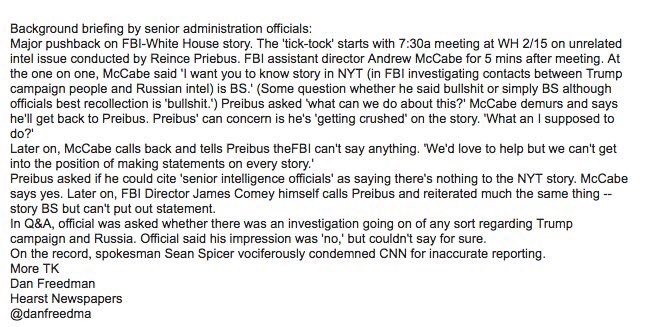 Priebus asking FBI deputy director if he can cite him as "senior intelligence officials"pic.twitter.com/MNahatWoGY