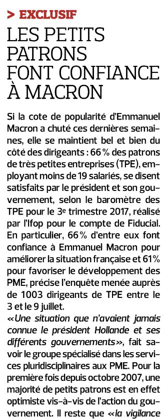 Pour la 1ère fois depuis 2007, la majorité des patrons de petites entreprises fait confiance au Président.