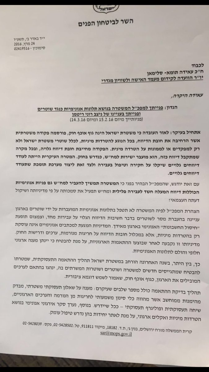 בעקבות הפרסום בחדשות 2 נראה לי מתחילה מלחמת עולם בין השר למפכל.