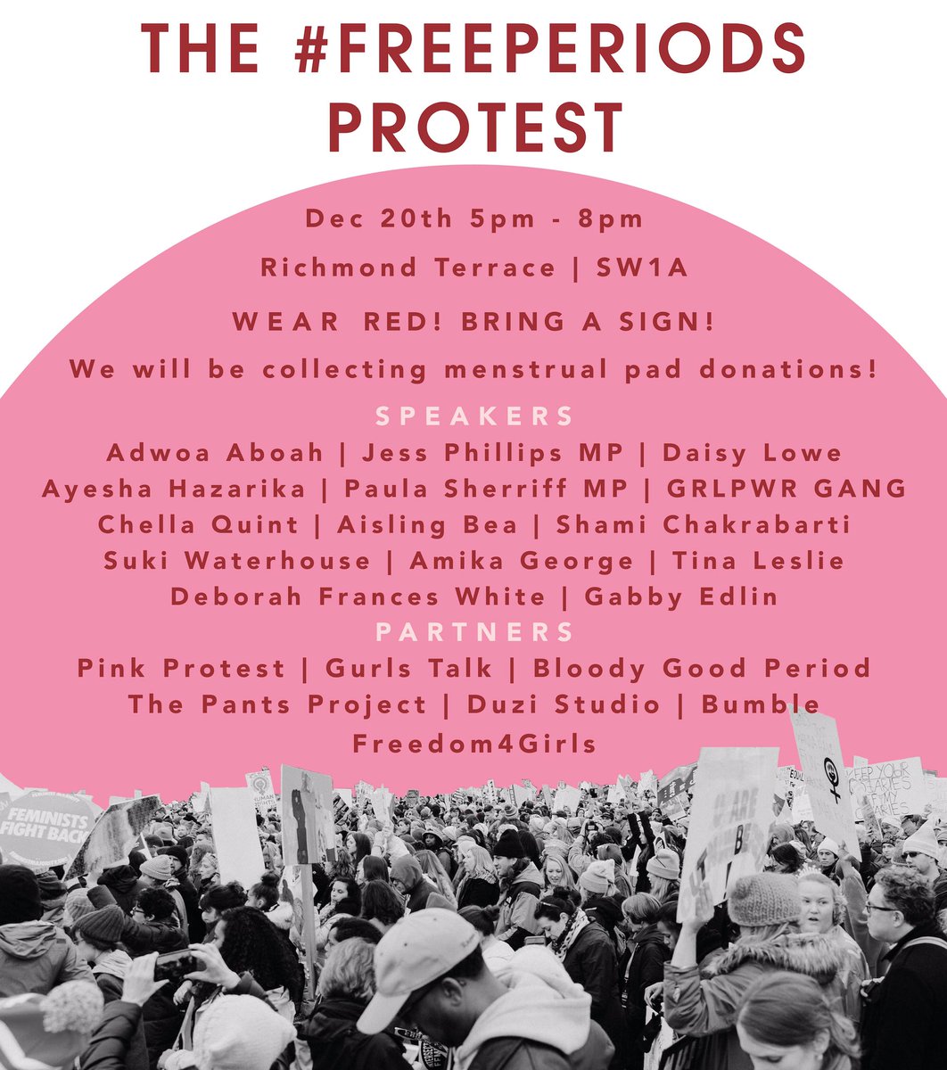 #FreePeriods protest because we want the government to do more to support girls who can't afford to buy menstruation products. See you there!pic.twitter.com/nfDF9irmVA