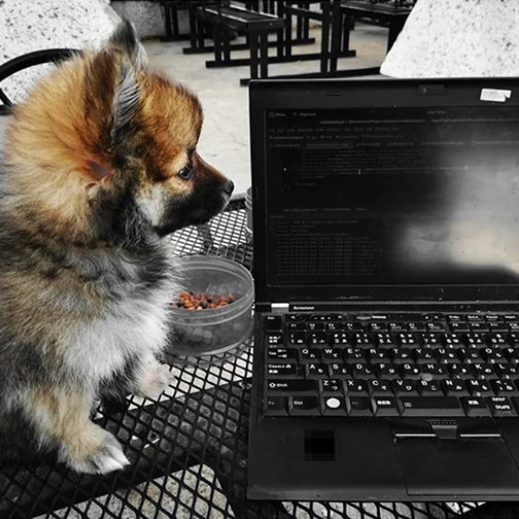 Barks at mailman. Barks at squirrels. Barks at vacuum cleaner. Gazes lovingly at ThinkPad. Need we say more? IG