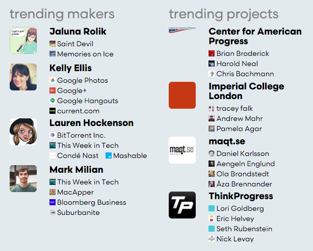 Lots of new stuff today! Friend updates, a way to say who inspires you & a new Explore page https://making.makerba.se/inspiring-makers-on-makerbase-6706f475b337#.zdbl2z1z9 …pic.twitter.com/dM0IgVEiRr