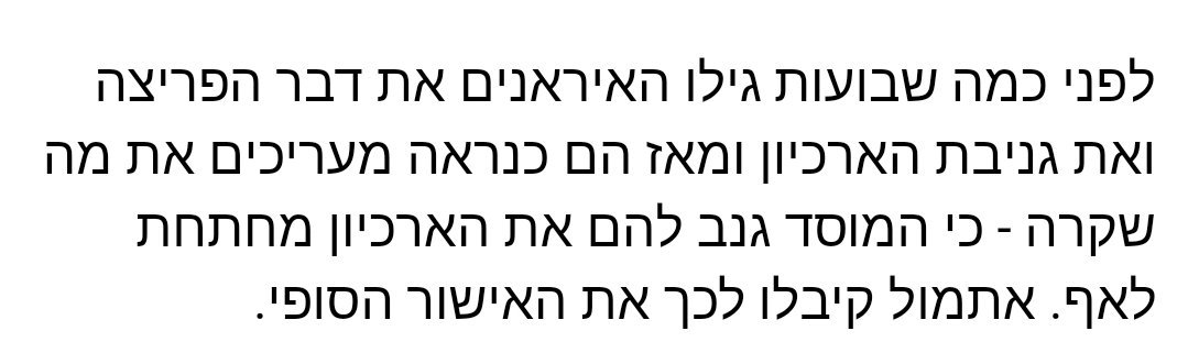 @ronenbergman on@ynet this morning, Iran found out the Mossad had broken into their secret nuclear archive a couple of weeks agopic.twitter.com/XnuZplJP4f