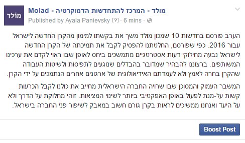 מוזמנות ומוזמנים להרצאה של ראש מחלקת תחקירים במולד, ליאת שלזינגר, על מימון הימין: https://twitter.com/Schlesi/status/714328512409296896 …