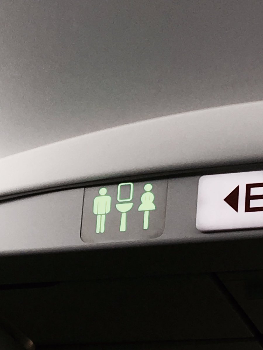 Who decided the woman's icon would be the one to host the input indicator? (Lavatory sign on my flight.)