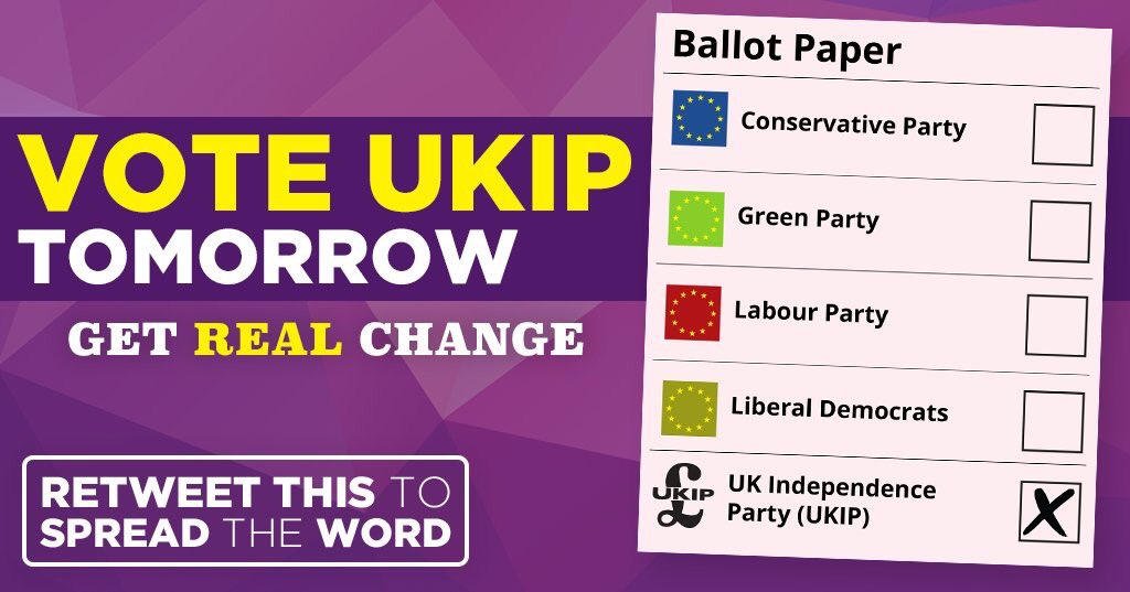 Tomorrow is the British Super Thursday and every one of you has a vote. Make it count. Vote UKIP for