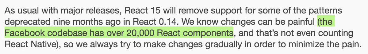 This insane gem buried in Facebook's release notes for React v15.0 https://facebook.github.io/react/blog/2016/04/07/react-v15.html …pic.twitter.com/a1C8arfKdn