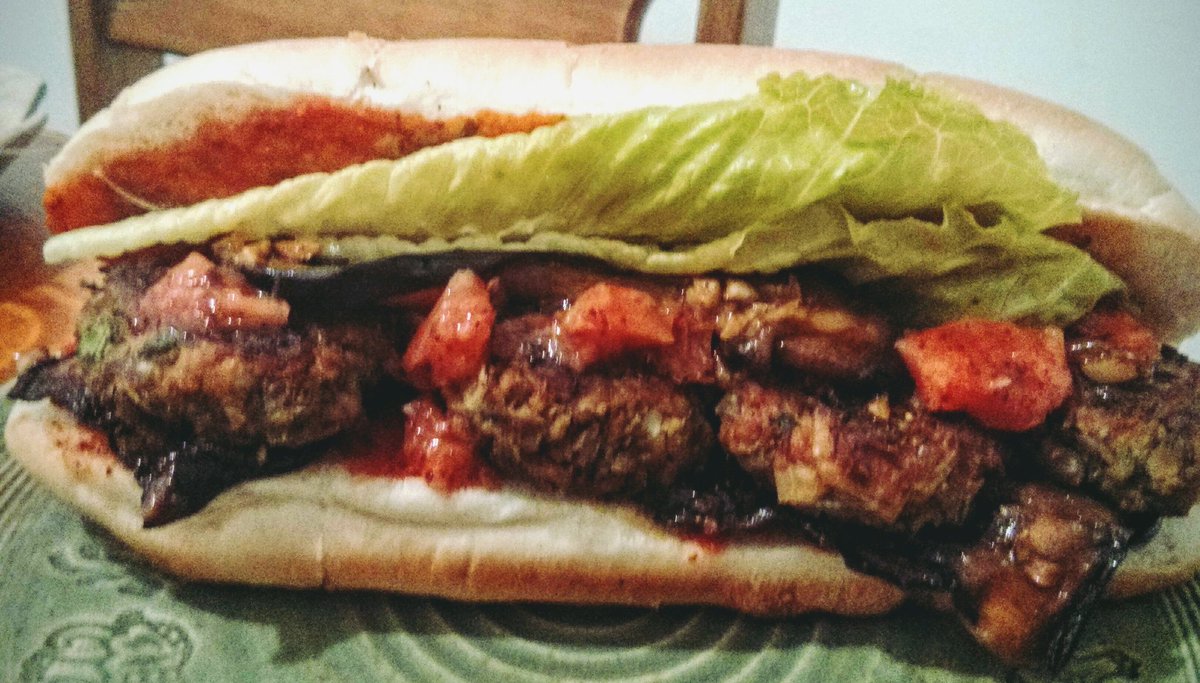כריך מפואר של קציצות עדשים, חצילים בשום ירוק, פלפלים קלויים, חריף איטלקי, ולימון כבושpic.twitter.com/U2J3iusmL4