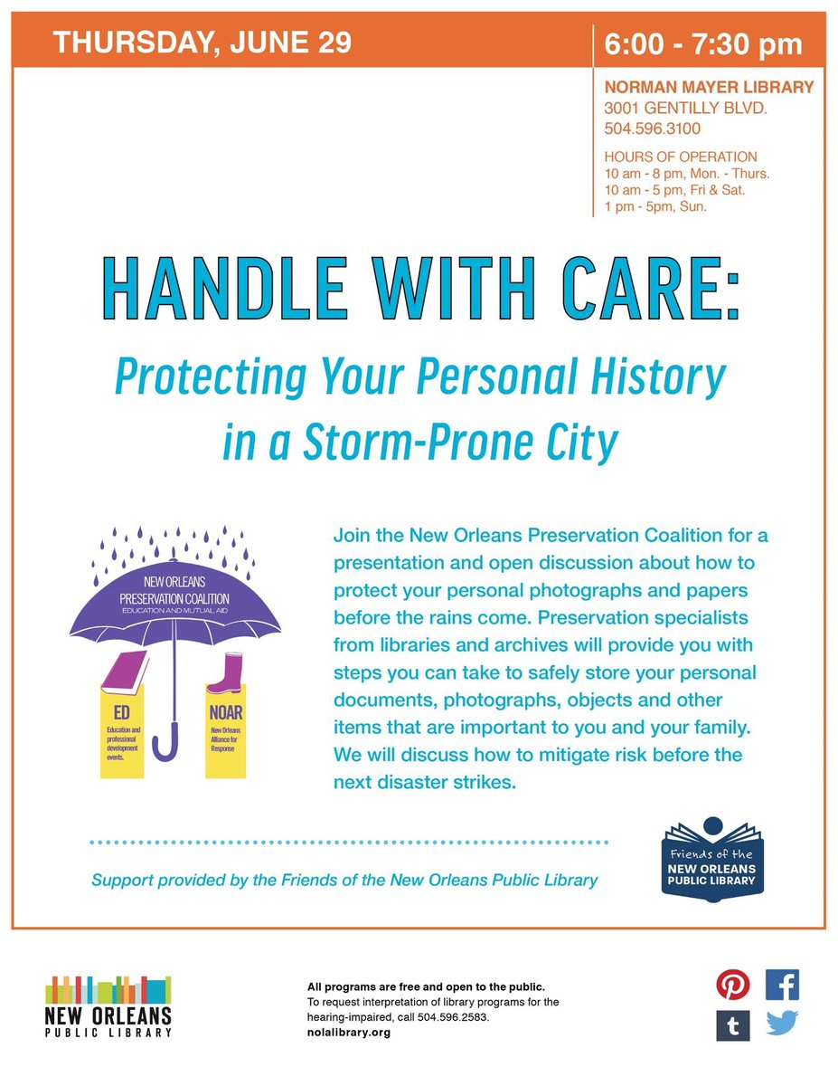 This Thurs., learn from the N.O. Preservation Coalition how to safely store photos & docs during