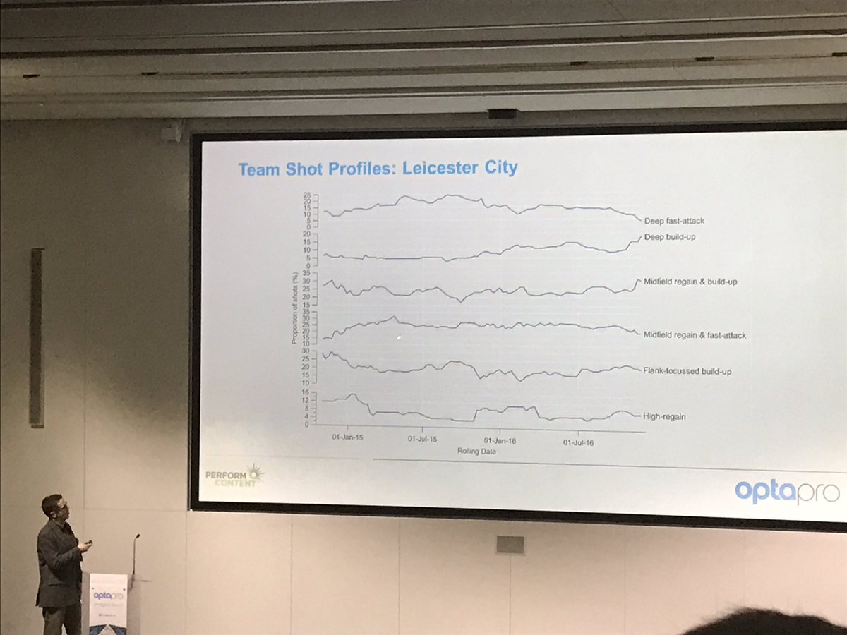 The first talk after lunch is from , using data to identify teams' changing tactical approaches. Evolved.