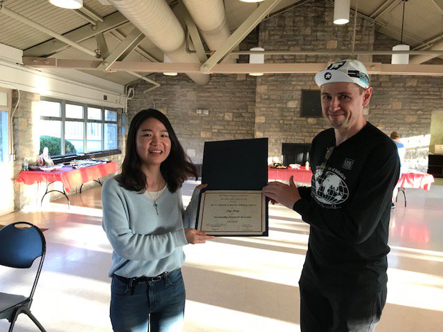 Jean Scott (center) was awarded a University Distinguished Staff Award last week. She is picture here with Whitney Research Award Winner Deborah Kunkel (left) and Craig Cooley Memorial Award Winner Justin Strait (right).