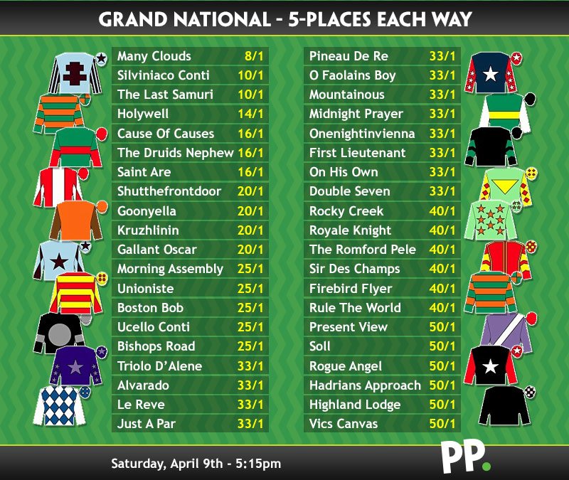 #GrandNational winner? Full betting: http://pdy.pr/i1sBpJ pic.twitter.com/gwHMPIp9pW