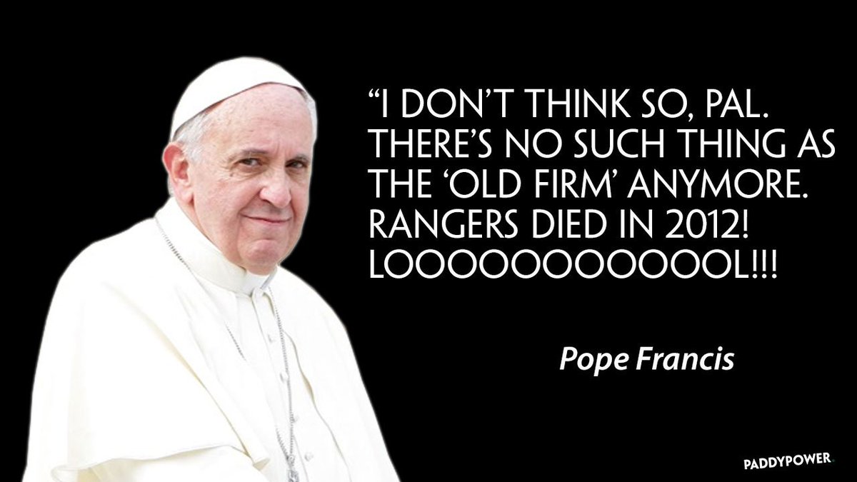 Our traders have quoted us 10,000/1 for the Pope to sign for Rangers. Make of that what you will.
