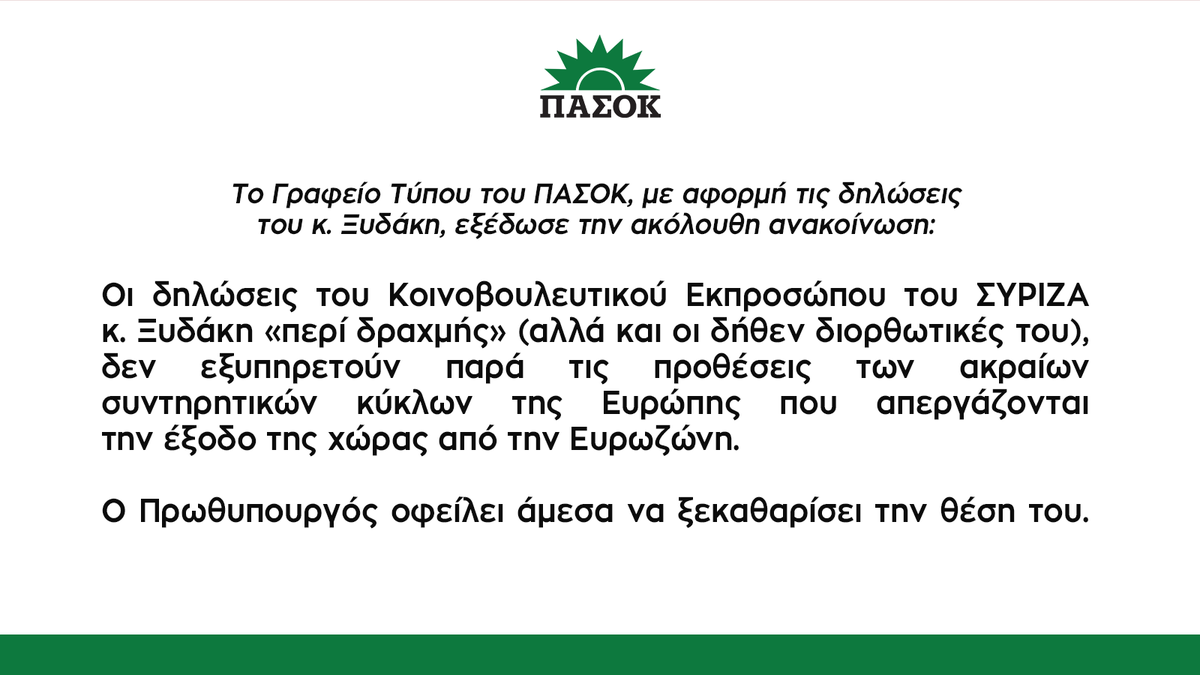 Το Γραφείο Τύπου του ΠΑΣΟΚ, με αφορμή τις δηλώσεις του κ. Ξυδάκη, εξέδωσε την ακόλουθη ανακοίνωση:pic.twitter.com/MRXvgN2Jfu