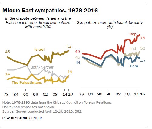 75% of Repubs sympathize w/ Israel more than w/ the Palestinians compared with 43% of Dems http://pewrsr.ch/1rWkU5I pic.twitter.com/GUfOTiTcfU