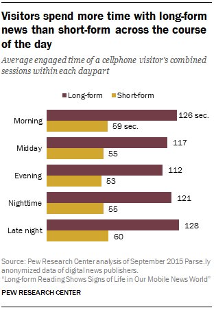 Readers spend abt twice the time w/ longer news content on cellphones than shorter http://pewrsr.ch/26WBRgm pic.twitter.com/cHtMiGcEhb