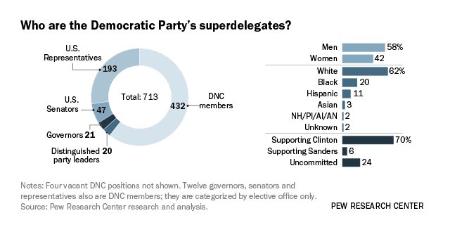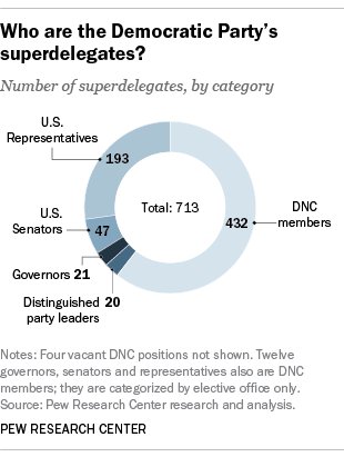 Superdelegates will account for just under 15% of all votes at July’s Democratic convention http://pewrsr.ch/21Aq4QN pic.twitter.com/mRVCPW6H4X