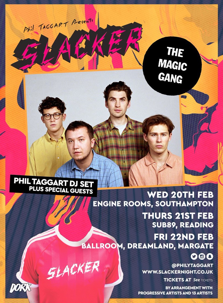 @slackernight is on tour in February.@_TheMagicGang will be playing live. I'll be DJ'n and we have an ace support announced in Jan. 20th Feb - Southampton: http://wbr.ec/tmg-soton 21st Feb - Reading: http://wbr.ec/tmg-reading 22nd Feb - Margate: https://wbr.ec/tmg-margate pic.twitter.com/ty2Lo1j3CY