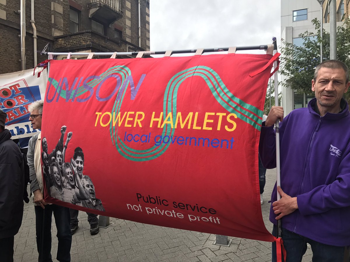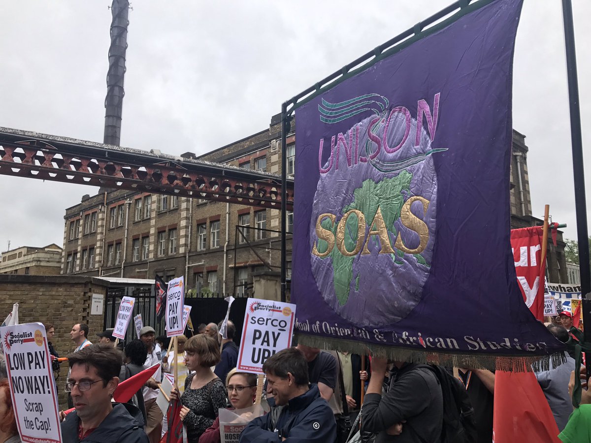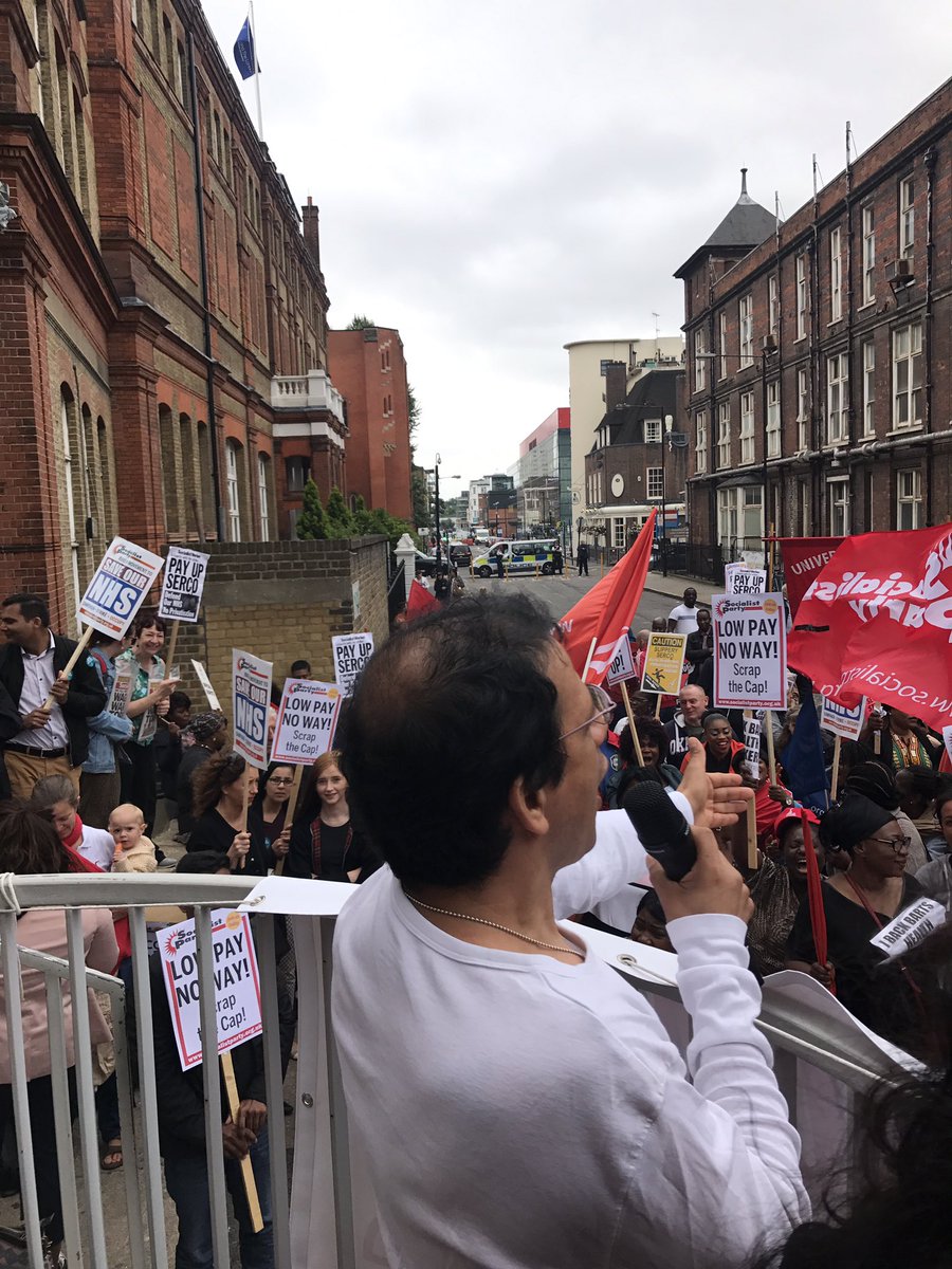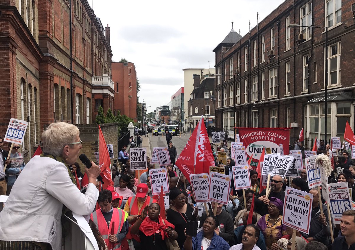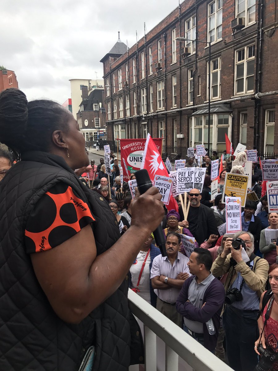 BREAKING NEWS: 100's of striking hospital workers and their supporters are currently marching down Mile End Road, East London