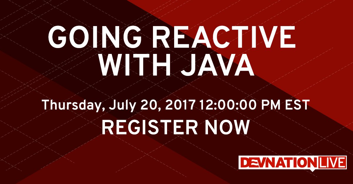 "DevNation Live Webinar Series: Going Reactive with Java" has been published on RHD Blog - https://developers.redhat.com/blog/2017/07/14/devnation-live-webinar-series-going-reactive-with-java/ …pic.twitter.com/2maEUI2aAp