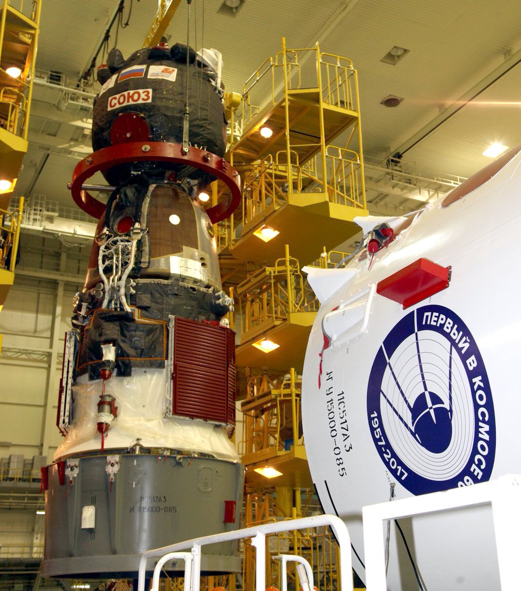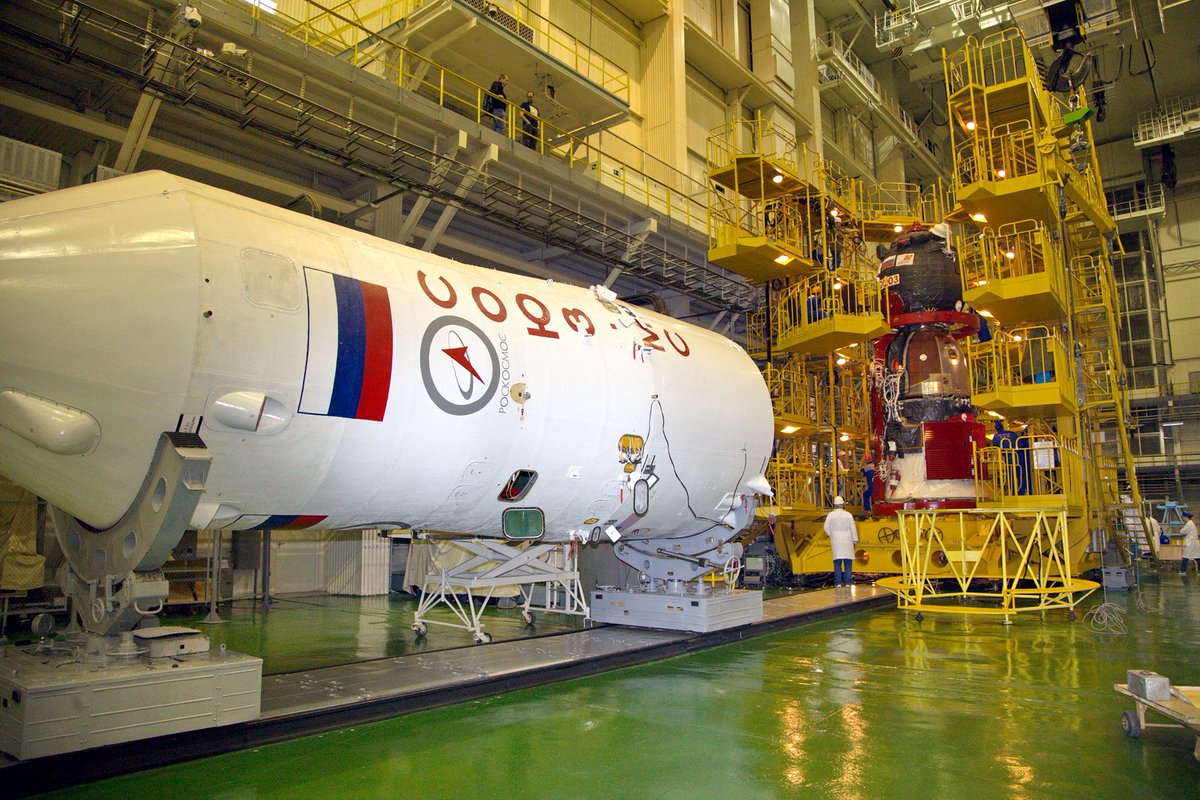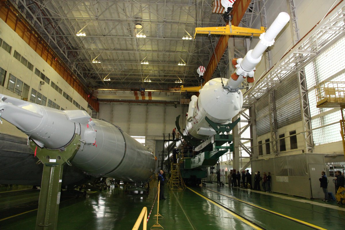 На Байконуре завершена стыковка пилотируемого корабля с переходным отсеком - . Пуск запланирован 20 апреля.