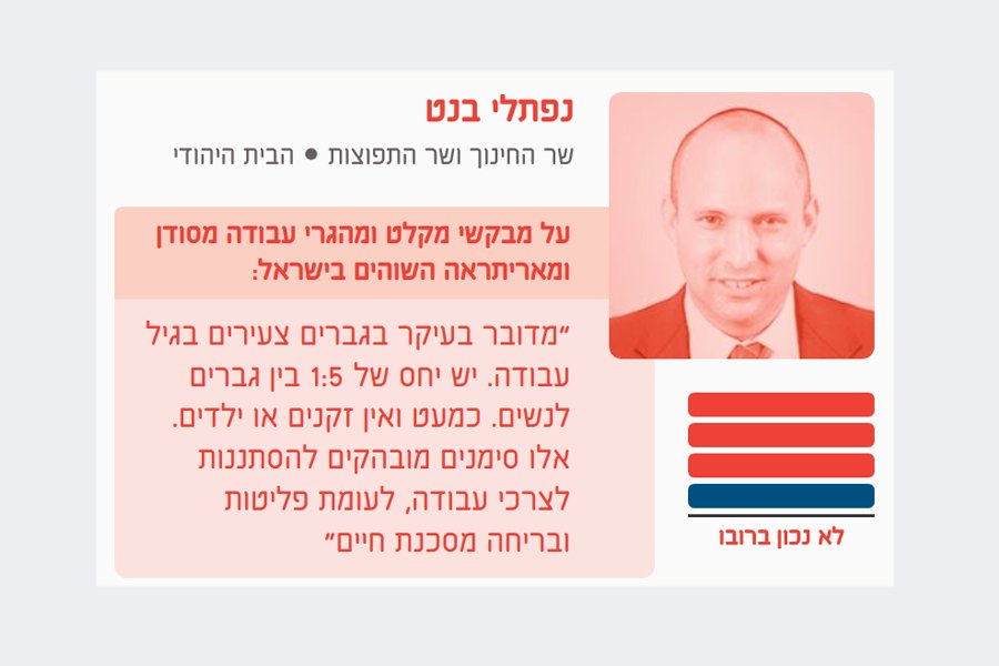 לפי בנט, הפרופיל של האריתראים והסודנים בישראל הוא של מהגרי עבודה. למהגרי עבודה אין ממש פרופיל אחיד, אבל לאוכלוסייה הזו דווקא יש את רוב הסממנים של אוכלוסיות פליטים מהשנים האחרונות>> http://bit.ly/2Gz4eZN pic.twitter.com/0Gw8ht8vQR