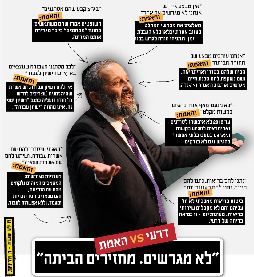 @Ilan_Lior שמפרקת את הראיון שנתן @@ariyederi ל@RinoZror בנושא גירוש מבקשי המקלט. יש כאן 7 נקודות עיקריות אבל יש עוד כמה וכמה סיפורים שלא משיקים עם המציאות >pic.twitter.com/MO2IUor0C0