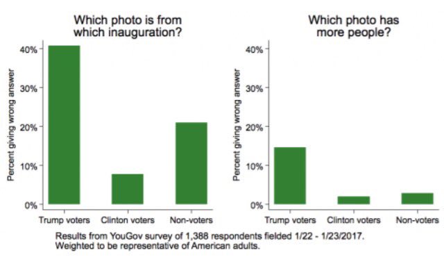 41% of Trump voters say the photo on the right is from Trump's innaguration, 15% say left picture has more people. https://www.washingtonpost.com/news/monkey-cage/wp/2017/01/25/we-asked-people-which-inauguration-crowd-was-bigger-heres-what-they-said/?utm_term=.c2bcd8a98cbc …pic.twitter.com/XSIbAth6VP